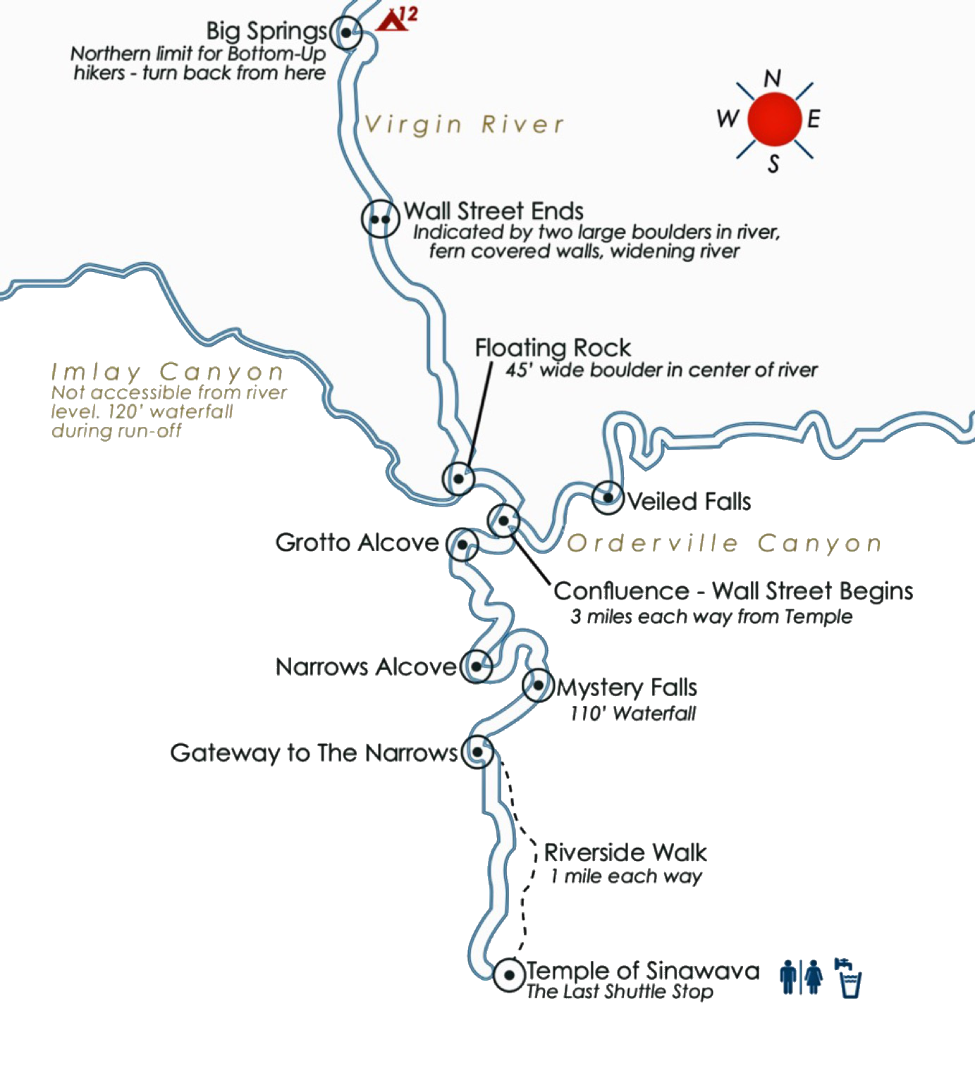 Not far into the Narrows, you’ll reach Mystery Canyon Falls, a small but striking waterfall spilling into the river from a side canyon. It’s a favorite photo stop and a natural landmark along the way, marking your progress deeper into the gorge.
